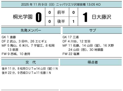 全国高校サッカー選手権 神奈川県2次予選 決勝 2025年11月15日 by bluesea·0件のコメント 朝から雨が降ったりやんだりと不安定な天候にもかかわらず、6年ぶり >>>このコンテンツは後援会会員限定となります。ログインはこちらから新規後援会入会はこちらから